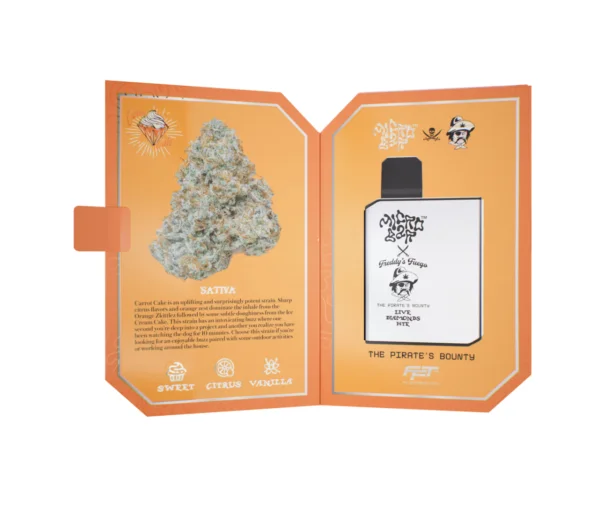 The Carrot Cake strain is created from a genetic cross between Wedding Cake and London Poundcake, producing a well-balanced cultivar with strong potency and a rich terpene profile. While sometimes categorized as a hybrid, many vape products highlight its sativa-leaning effects, which can provide a light mental boost and uplifting energy. Users often describe the experience as happy, talkative, and mildly euphoric, making it a suitable option for social situations or creative activities.